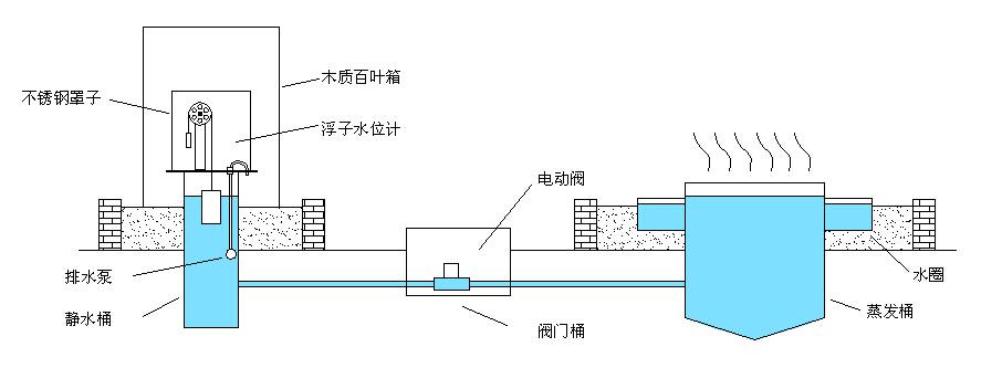 蒸發(fā)站的靜水桶埋于觀測現(xiàn)場的土中,靜水桶下部通過連通管與蒸發(fā)桶連接,與蒸發(fā)桶形成連通結(jié)構(gòu),實現(xiàn)兩者水面同步變化。