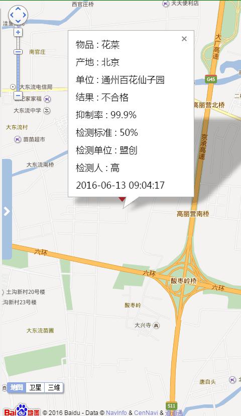 10、GIS地圖生成:利用檢測設備內置的GPS模塊,實現衛星定位數據捆綁測試數據信息,實施GIS地圖定點監控每個檢測點的位置信息,監測者可在其衛星定位圖標上點擊位置坐標查看該檢測點測試數據相關索引信息。