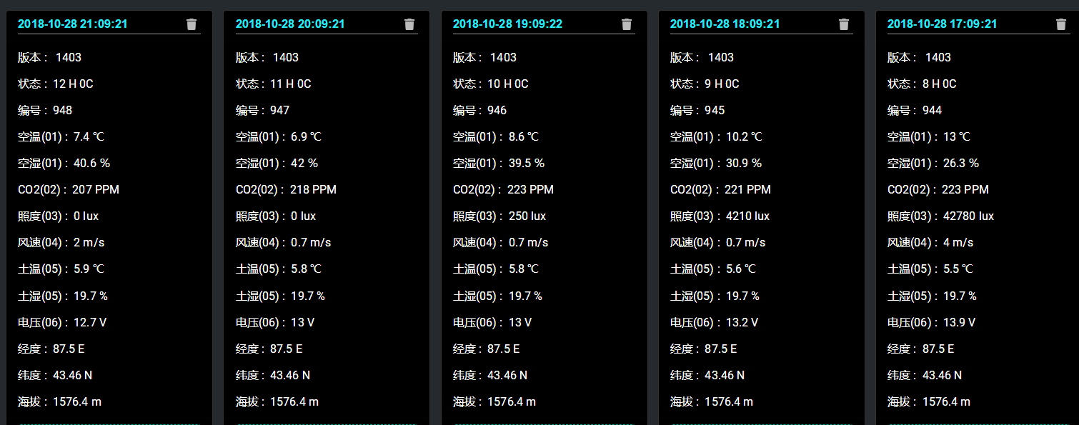 清單明細式顯示方式,可以直觀地查看各個環境因素參數在某個時間點的監測數據。