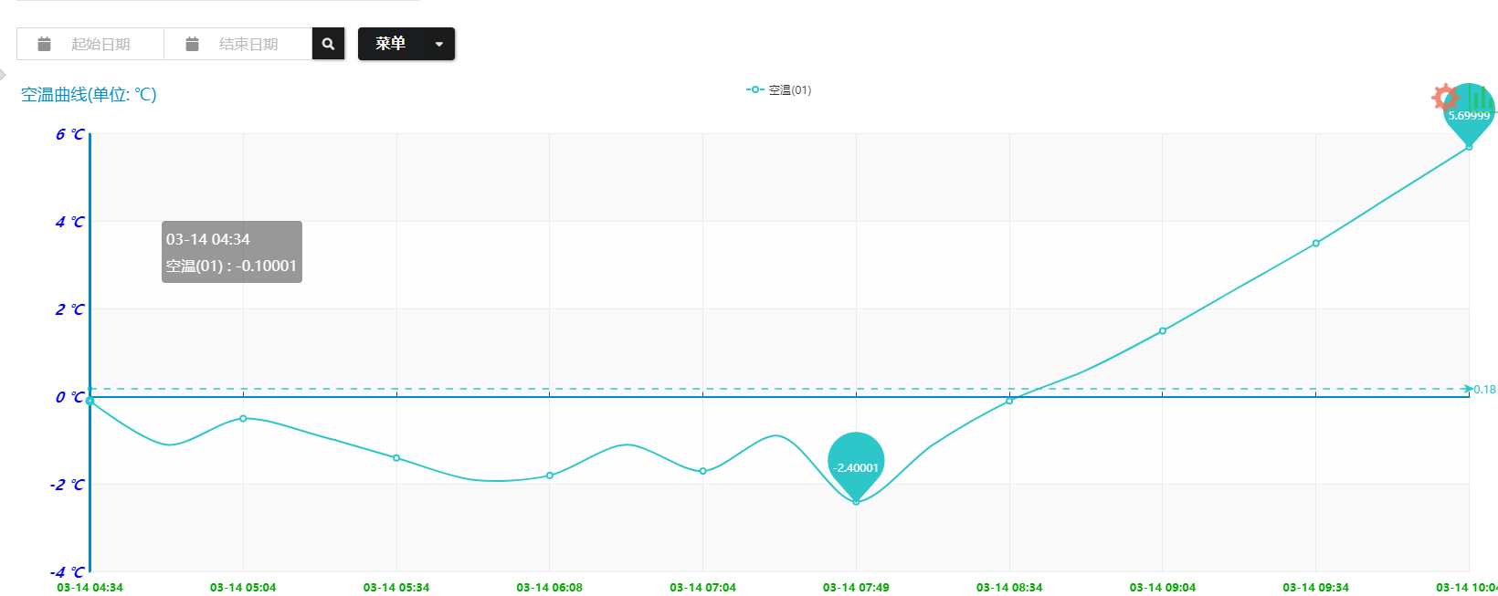 D、通過曲線走勢或立柱式統計,更能直觀形象的查看某一時間段內的數據最高值、最低值和平均值。詳見如下: