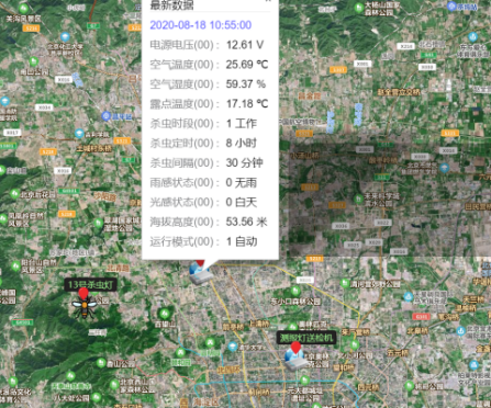 可擴(kuò)展接入防治區(qū)域氣象環(huán)境參數(shù)和拍照?qǐng)D片上傳,可以有效遠(yuǎn)程掌握該區(qū)域氣象對(duì)防治蟲(chóng)害的影響和運(yùn)動(dòng)時(shí)間范圍軌跡,同時(shí)可和圖片分析蟲(chóng)害的分類(lèi)等數(shù)據(jù)比對(duì)。